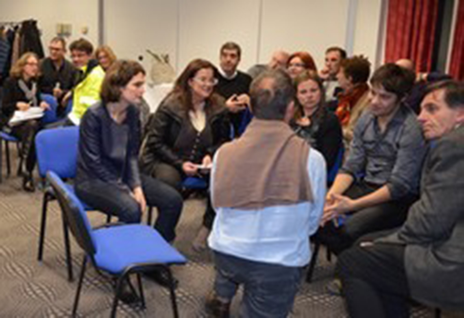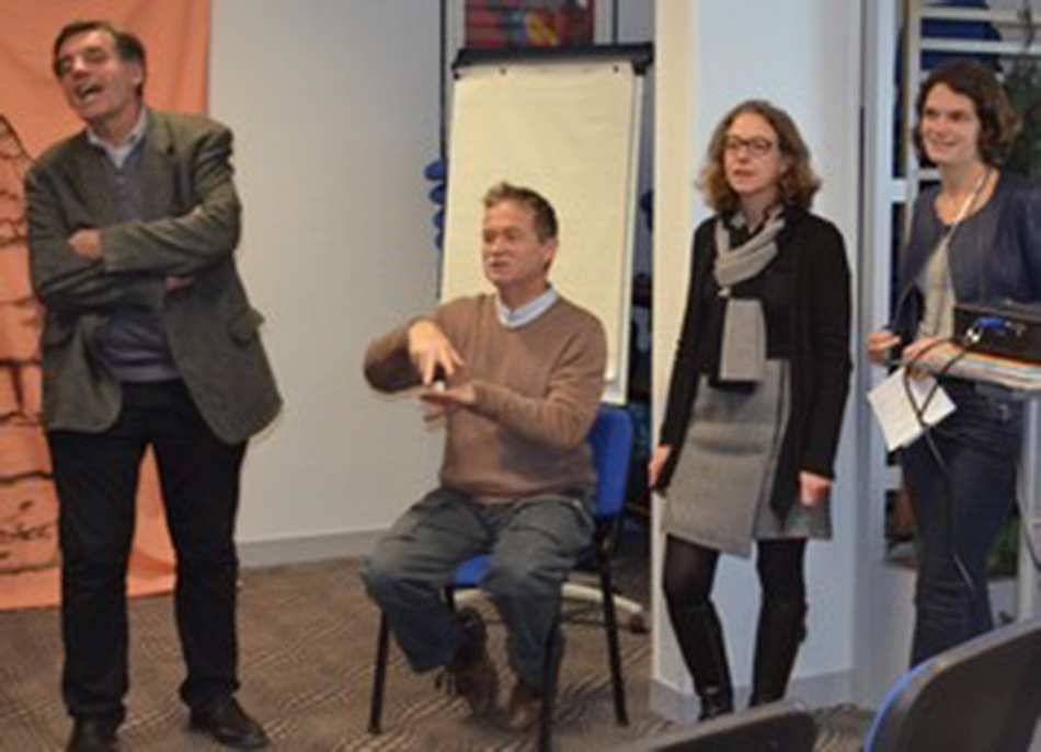Nous avons confié l’animation de cette soirée à l’association Mikado et Pacos, artiste burkinabé, nous a apporté sa poésie à travers le conte et le djembé. Par petits groupes, les participants ont défini deux races d’animaux : l’une compatible, l’autre incompatible au thème énoncé. Sur cette base, Pacos a improvisé un conte sur le thème du « Vivre ensemble » en mettant en scène ces animaux. Et, afin que tous puissent participer à ce moment, Michel Roussy, de L’Urapeda, a traduit les échanges et les contes en langage des signes, pour nos salariés malentendants.