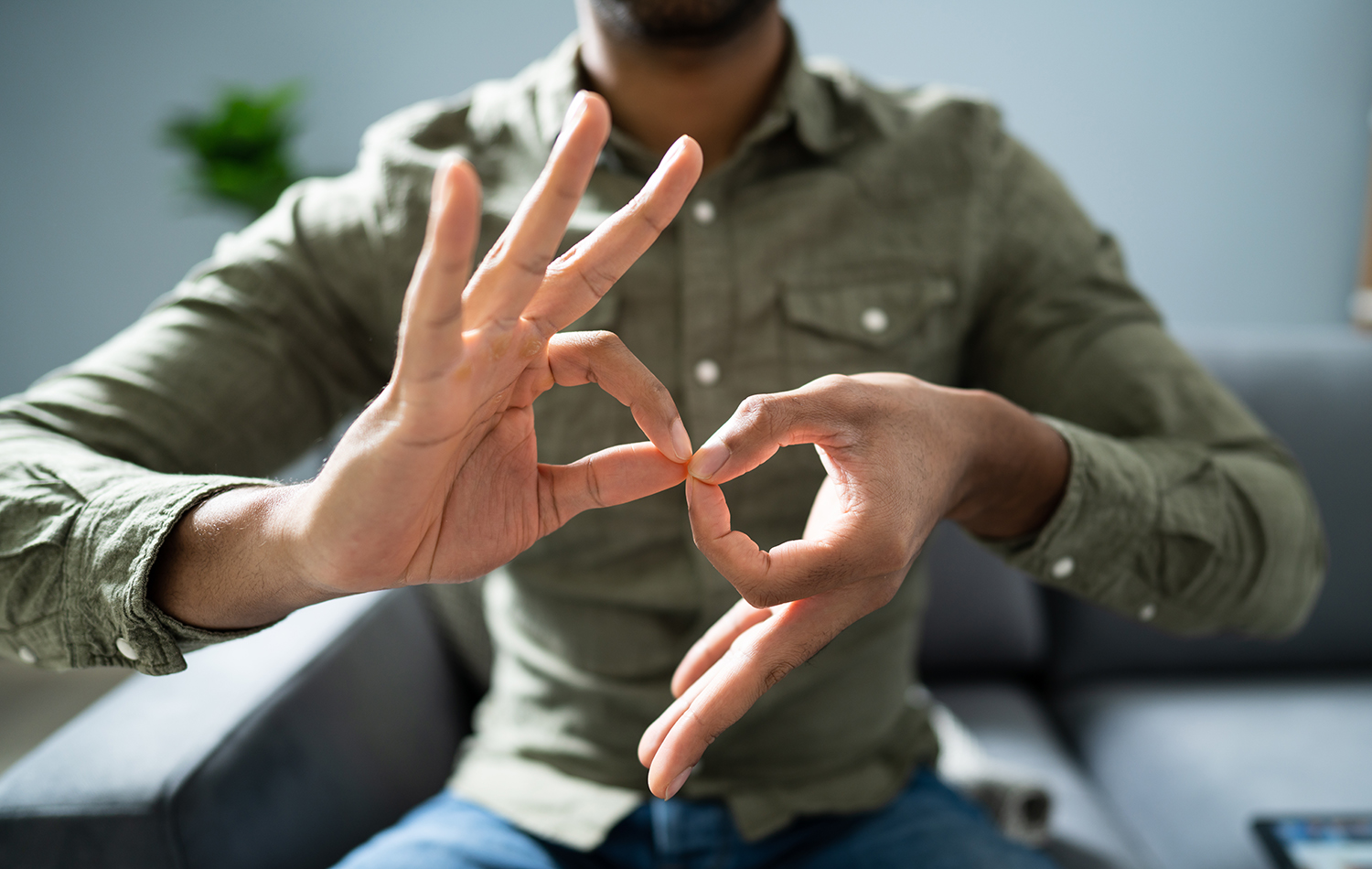 Dans la situation de Murielle, nous intervenons en entreprise pour traduire en Langue des signes les messages oraux nécessaires à l’exécution de son travail.